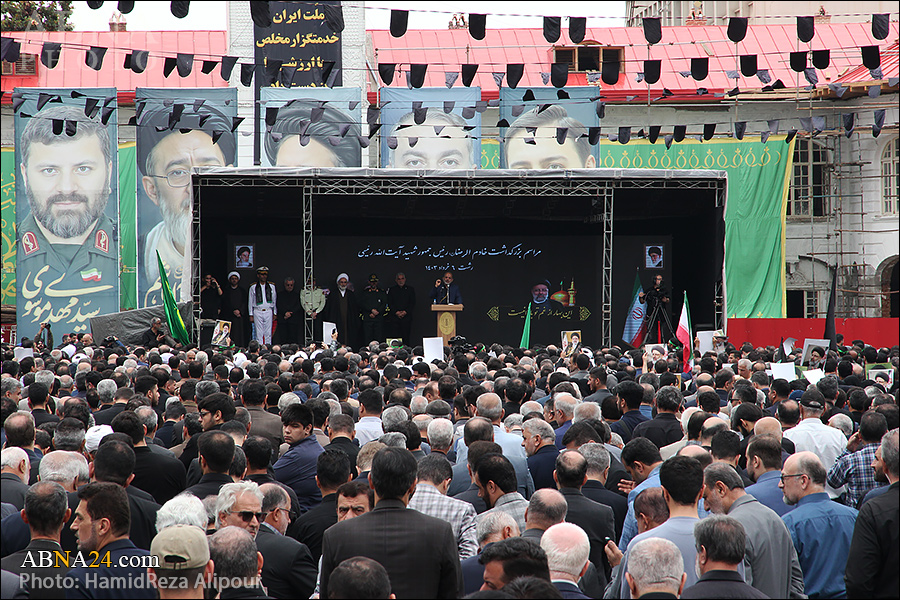 اقامه نماز رهبر انقلاب بر پیکر ابراهیم رئیسی و ۷ شهید خدمت